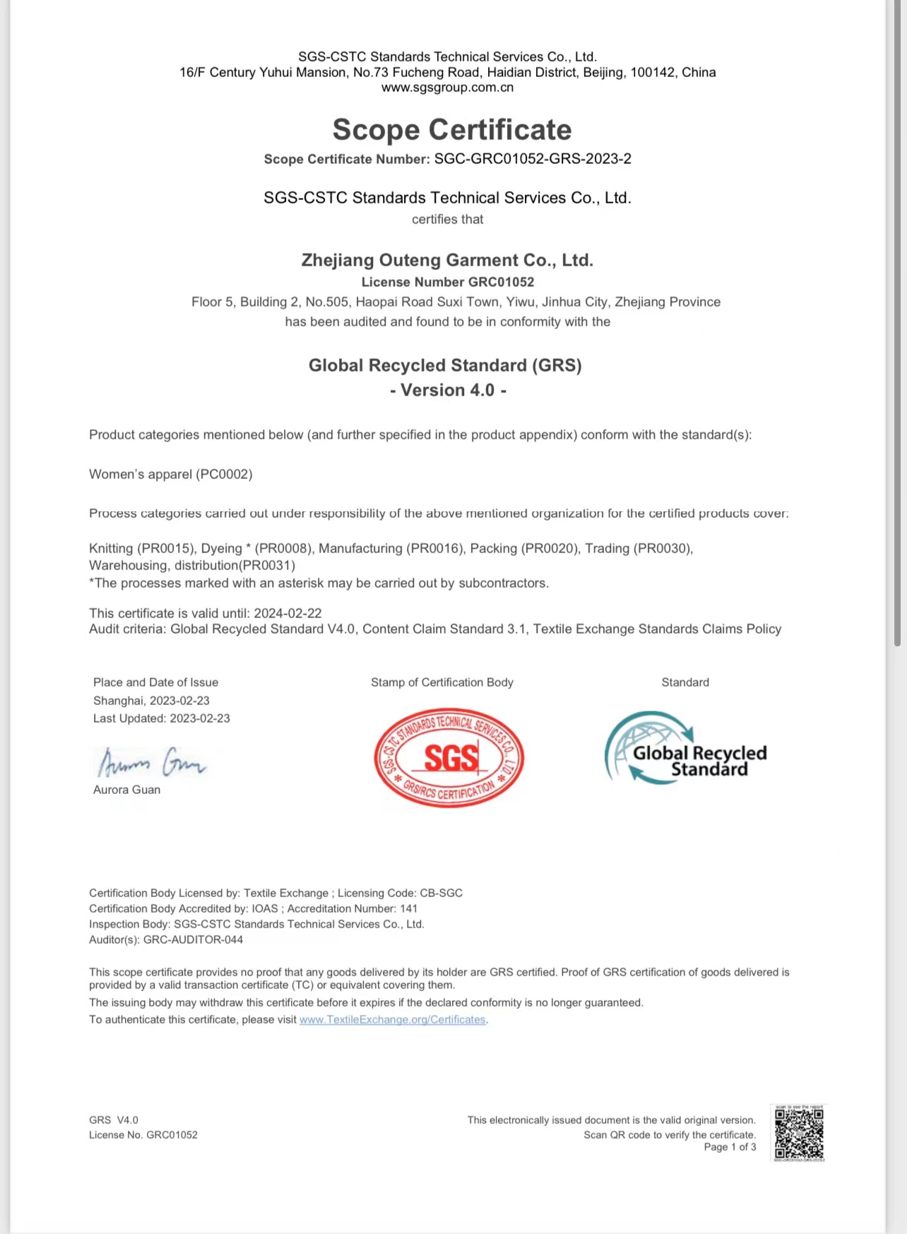 浙江歐騰服飾有限公司位于世界小商品之都-義烏。創(chuàng)立于2015年,是一家專業生產無縫針織運動服飾和內衣的工貿一體企業,擁有自主出口權。 工廠的占地面積約16000平方米 ,引進了大型圣東尼、高騰等多種先進的制衣設備300余臺。月產能可達90萬件。 歐騰服飾每年投入近百萬資金打樣開發(fā)新產品,有著一支高素質設計、技術員工隊伍。工廠先后通過了ISO 9001質量管理體系認證、BSCI認證、GRS認證、OEKO-TEX國際生態(tài)紡織品認證等多項專利檢測報告。可提供OEM&ODM服務。歐騰服飾以一套完整、科學的質量管理體系,生產的服裝從原材料紗線到成衣,質量完全能夠滿足國內、國際質量要求。獲得了客戶一致好評。工廠先后獲得省科技型企業、國家高新企業、義烏市誠信講信用單位、規(guī)上企業、信用AAA級等榮譽。